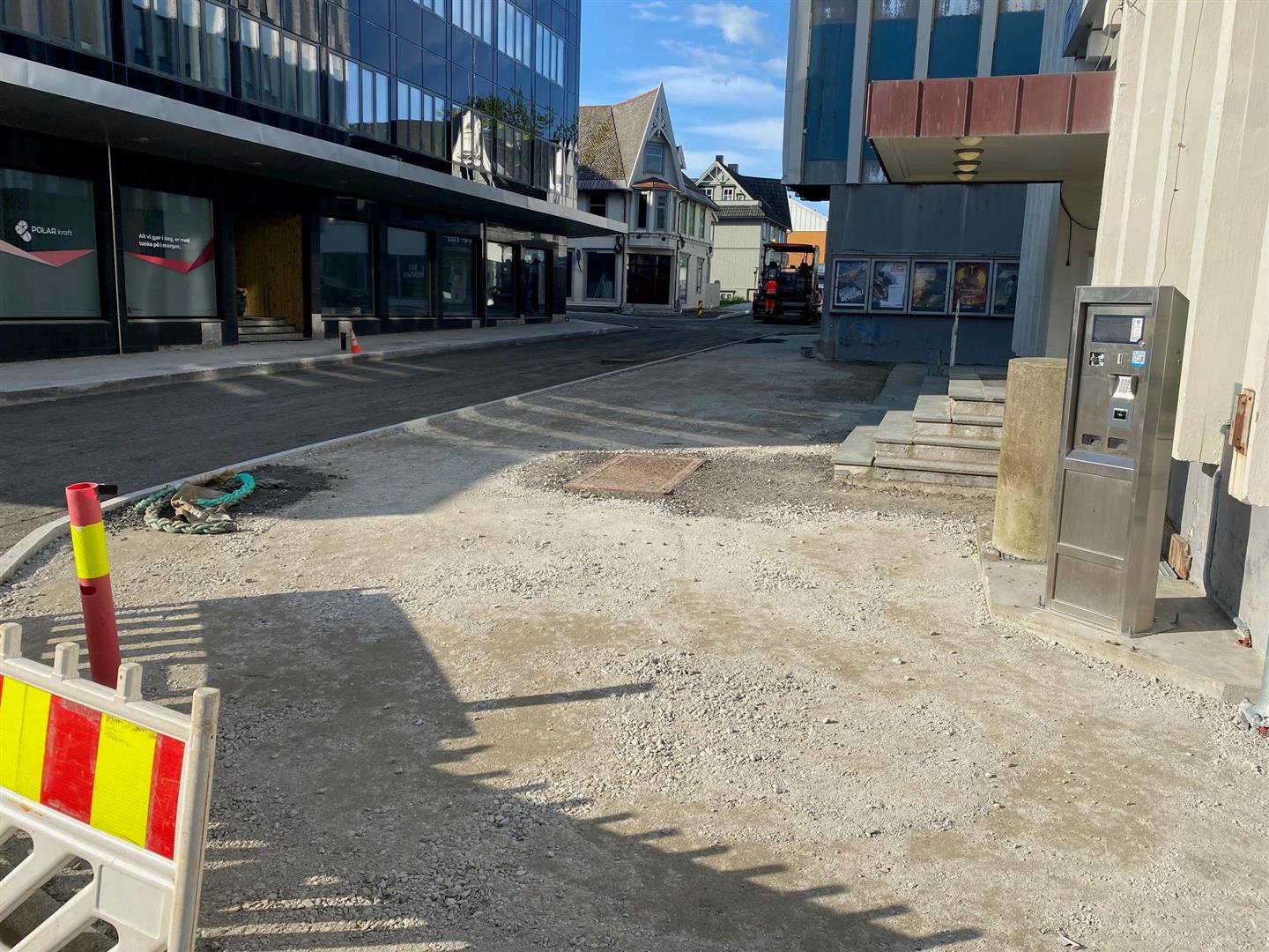 Det jobbes med å ferdigstille VA-grøft mellom rådhuskrysset og Kirkegata. Det blir også oppstart på steinlegging mellom parkene.