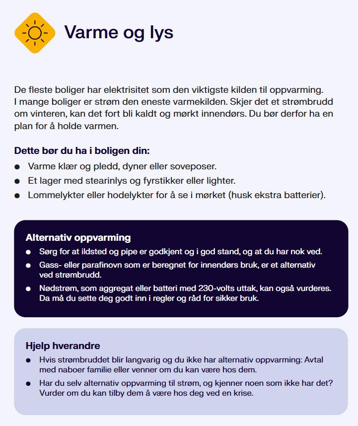 a. Det kommunale vannverket er robust, et strømbrudd vil ikke forårsake at vannet forsvinner, men enkelte kan oppleve dårligere trykk. Imidlertid vil et strømbrudd forhindre oss i å UV-bestråle vannet, slik at det da må sendes kokevarsel. Vannverket kan imidlertid bli utsatt for andre ting, eksempelvis vannledningsbrudd eller partikkelforurensning i drikkevannet. Dette vil kunne føre til at mange blir uten vann, eller får vann av dårlig kvalitet. Det er derfor viktig at du har vann i beredskap.